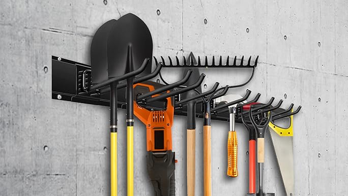 Heavy Duty Four Place Tool Hanger Garage Wall Mount Shovels Rakes Brooms Lawn Equipment And More Amazon Com